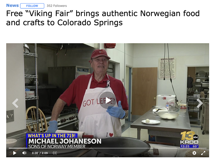 COLORADO SPRINGS, Colo. (KRDO) – The Sons of Norway Colorado Springs hosts their 16th annual Viking Fair Saturday from 9 a.m. to 3 p.m. with Norwegian food, arts and crafts, a raffle and more.